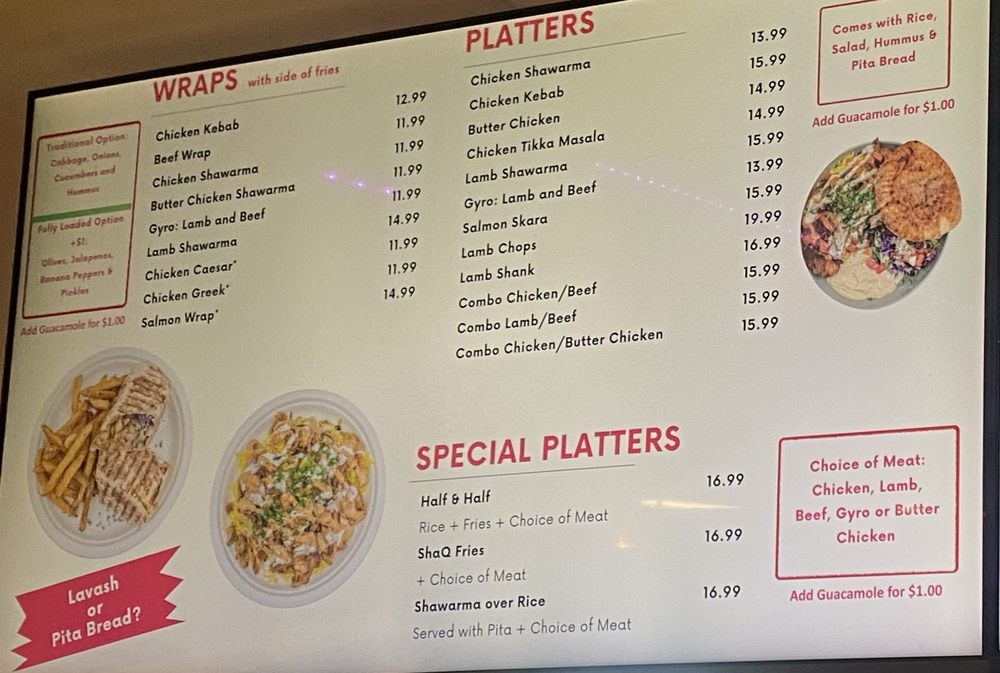 - Wraps Galore: Try their traditional Beef or Lamb Shawarma wraps, Chicken Greek, or the unique Butter Chicken Shawarma wrap that promises an explosion of taste with every bite.